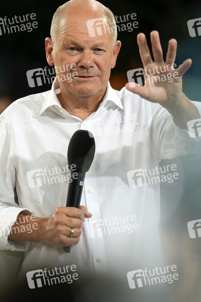 Olaf Scholz beim Kanzlergespräch mit Bürgern in der ufaFabrik. Berlin, 04.09.2024