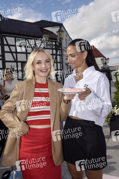 Janin Ullmann und Amira Aly beim Photocall zum 15-jährigen Jubiläum des Designer Outlet Berlin. Wustermark, 02.09.2025