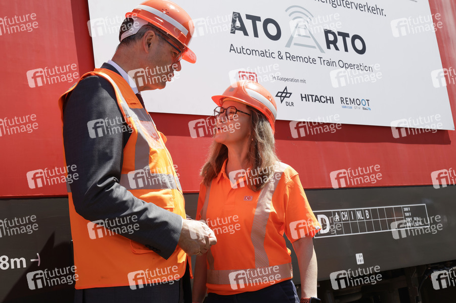 Assistenzsysteme, ATO, Automatic Train Operation, automatisierten Streckenbetrieb, Automatisierung, DB Cargo, Digitalisierung, Effizienz, Erprobung, Frlexibel, Güterzuglokomotive, Innovative Technik, Modernisierung, Niederländische Betuweroute, Remote Train Operation, RTO, Starken-Schiene-Strategie, Bahnbetrieb, Bahngleis, Bahnhof, Bahnindustrie, Bahnkörper, Bahnlogistik, Bahntechnik, Bahnverkehr, Baufachleute, Bauwerk, Betonkörper, Betriebsbahnhof, Cargo, Cargo-Outfit, DB-Netze, Deutsche Bahn AG, Deutsche Wirtschaft, Deutschlandtakt, Dienstleistungen, Eisenbahn, Europäischen Wirtschaft, Gleisbett, Gleise, Gleisführung, Güterbahnhof, Güterlokflotte, Güterverkehr, Güterzüge, Herausforderungen, Infrastruktur, Lieferketten, Logistik, Logistiklösungen, Lokwechsel, Metall, Nachhaltigkeit, Rail, Rangierdienst, Schiene, Schienengüterverkehr, Schienentransport, Schienenverkehr, Schwergewicht, Schwergewichte, Sustainability, Technik, Trassen, Verkehrsbranche, Verkehrsleistung, Verkehrssektor, Versorgungssicherheit, Warentransport, Wettbewerbsfähig, Themenbild, Symbolbild, Symbolfoto, DB-Cargo-Vorständin, Politiker, Bundesminister für Verkehr, CDU