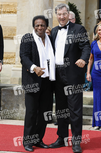 Roberto Blanco und Markus Söder bei der Eröffnung der 112. Richard-Wagner-Festspiele 2024 mit der Neuinszenierung von 'Tristan und Isolde' im Bayreuther Festspielhaus. Bayreuth, 25.07.2024
