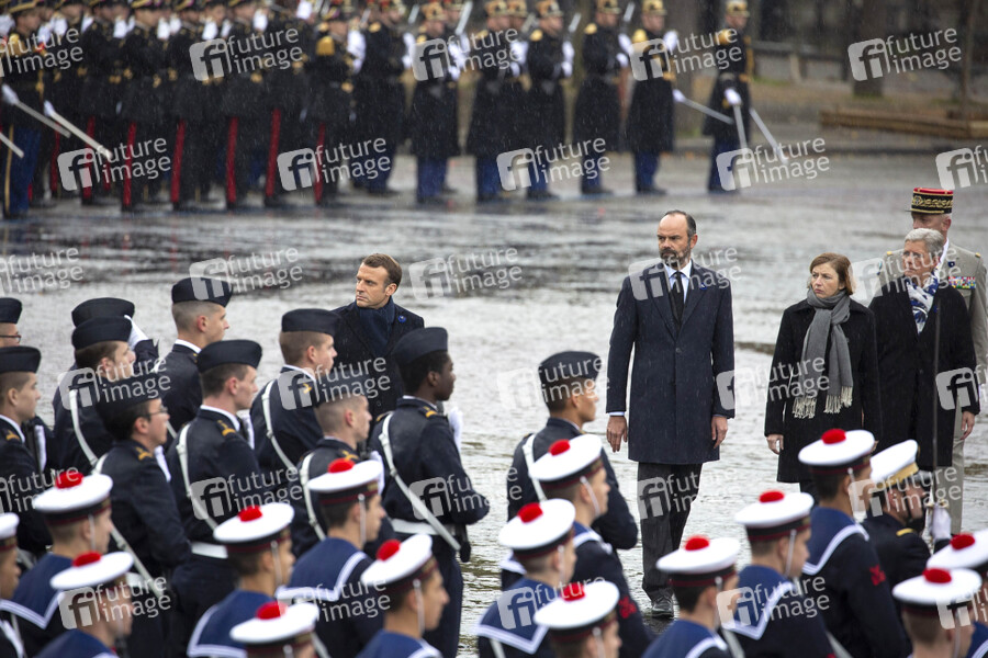 Staatspräsident von Frankreich, Premierminister von Frankreich, cérémonies du 101ème anniversaire de l’Armistice de 1918, Politiker, Politikerin, Politik, Euroapolitik, Weltpolitik, Zeremonie, Feierlichkeiten, Feierlichkeit, Staatengemeinschaft, Staatschefs, Internationale Organisationen, Verbündete, Militär, Soldaten