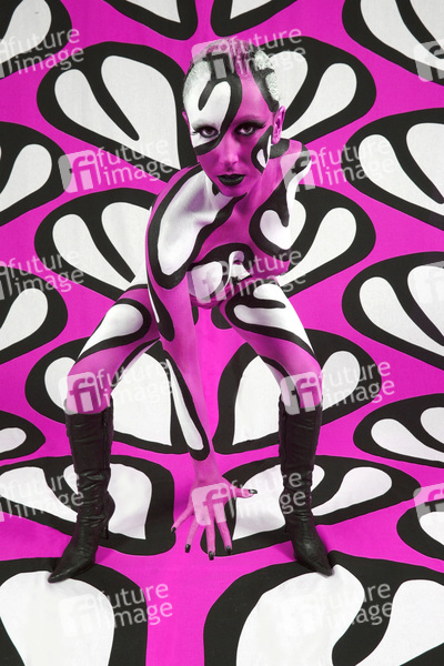 Bodypainting, Stoffdesign Anna Efverlund, Erotik, Frau, nackt, drinnen, weiblich, Muster, Chamäleon, erotic, woman, nude, indoor, female, chameleon