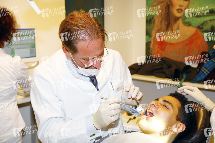 Vor seiner Abreise ins Dschungelcamp lässt sich Silva Gonzalez in der Praxis Dentalspecialists von Prof. Dr. Martin Joergens, Prof. Dr. Martin Wainwright und Dr. Caroline Kentsch zahnärztlich untersuchen, Düsseldorf