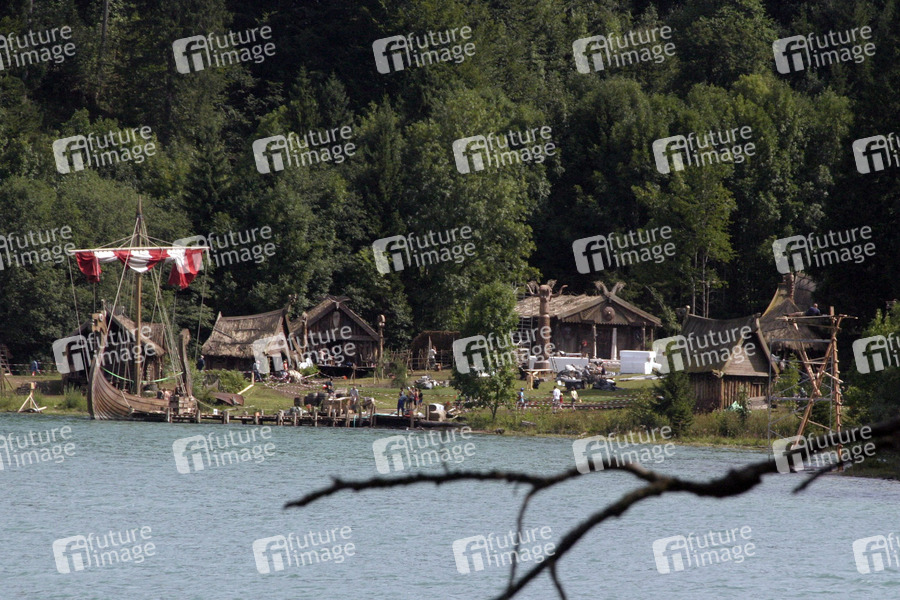 Am Filmset vom Michael 'Bully' Herbig Film 'Wickie und die starken Männer' am Walchensee in Oberbayern zwischen Garmisch und Bad Tölz. Das Wikingerdorf befindet sich in der Sachenbacher Bucht. Das Dorf bleibt nach den Dreharbeiten als Touristenattraktion stehen.