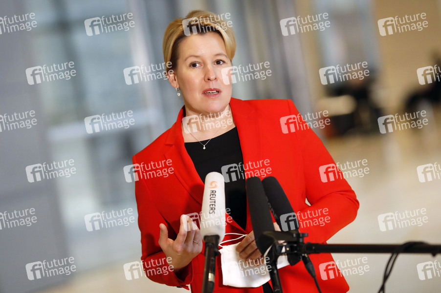 Franziska Giffey bei einem Pressestatement im Rahmen der 204. Sitzung des Deutschen Bundestages im Reichstagsgebäude. Berlin, 14.01.2021