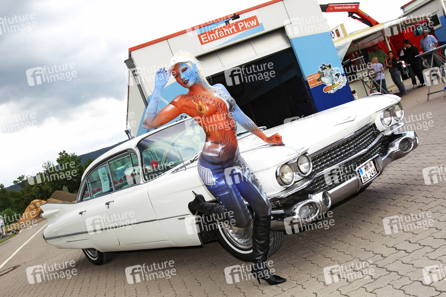Bodypainting, Erotik, Frau, Mädchen, nackt, draußen, weiblich, Körperkunst, Kunst, Malerei, Oldtimer, Cadillac, erotic, woman, girl, nude, outdoor, female, body art, body painting