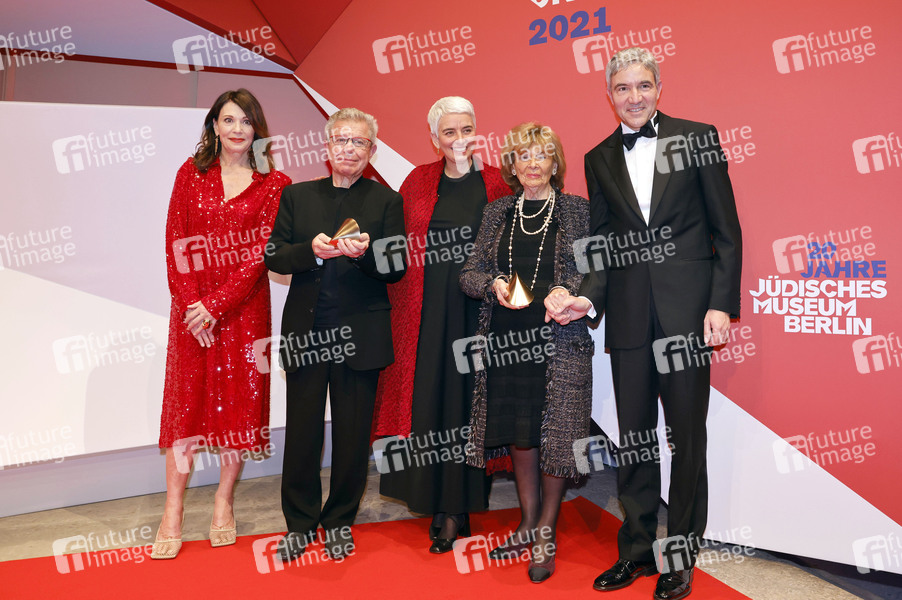 Iris Berben, Daniel Libeskind, Hetty Berg, Charlotte Knobloch und Stephan Harbarth bei der Verleihung des 'Preises für Verständigung und Toleranz' im Glashof des Jüdischen Museums. Berlin, 13.11.2021
