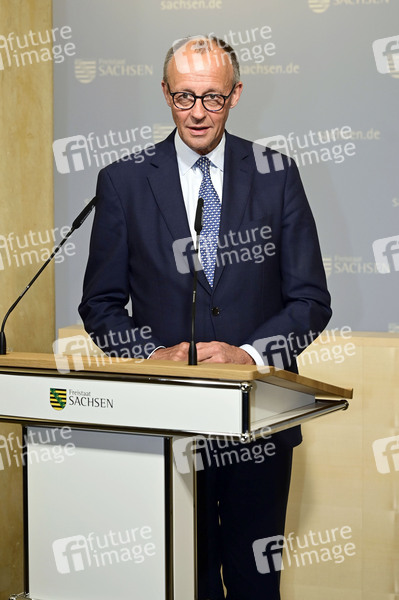Friedrich Merz beim Antrittsbesuch des Bundeskanzlers im Freistaat Sachsen in der Sächsischen Staatskanzlei. Dresden, 28.10.2025