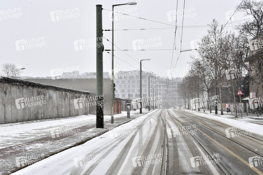 Schneefall an der Gedenkstätte Berliner Mauer. Berlin, 07.02.2021