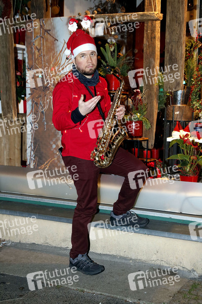 Saxophonist Klime Levene spielt Weihnachtslieder in Berlin