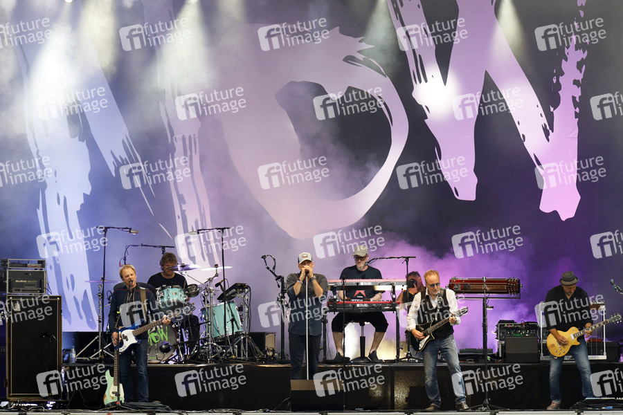 Christian Decker, Rainer Schumann, Kai Wingenfelder, Gero Drnek, Martin Huch und Thorsten Wingenfelder von Fury in the Slaughterhouse live beim Strandkorb Open Air im Sparkassenpark Mönchengladbach. Mönchengladbach, 30.07.2021