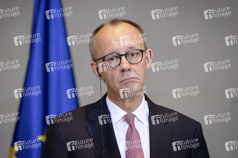 Friedrich Merz beim Empfang des Ministerpräsidenten von Rumänien zu einem gemeinsamen Gespräch mit anschließendem Pressestatement im Bundeskanzleramt. Berlin, 28.01.2026