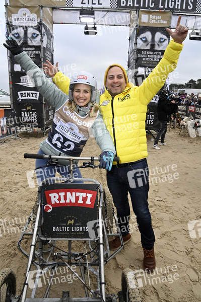 Susan Sideropoulos mit Ehemann Jakob Shtizberg beim 9. Baltic Lights 2025 Charity-Schlittenhunderennen zu Gunsten der Welthungerhilfe zwischen der Seebrücke Ahlbeck und der Seebrücke Heringsdorf. Heringsdorf, 01.03.2025