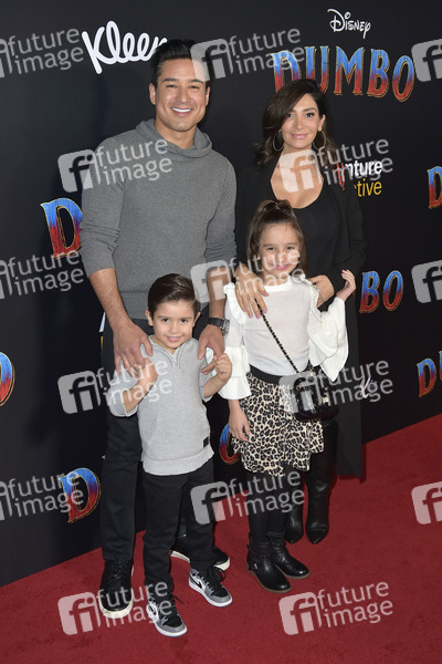 Mario Lopez mit Ehefrau Courtney Laine Mazza und Kindern Dominic Lopez und Gia Francesca Lopez bei der Weltpremiere des Kinofilms 'Dumbo' im El Capitan Theatre. Los Angeles, 11.03.2019