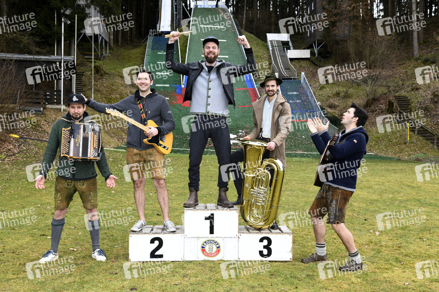 DeSchoWieda beim Fototermin an der Sprungschanze Auerbach. Wartenberg, 19.02.2021