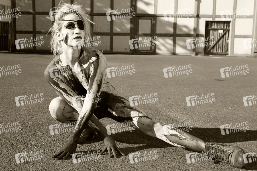 Bodypainting, Erotik, Frau, Mädchen, nackt, draußen, weiblich, Körperkunst, Kunst, Malerei, Augenklappe, erotic, woman, girl, nude, outdoor, female, body art, body painting, eyepatch