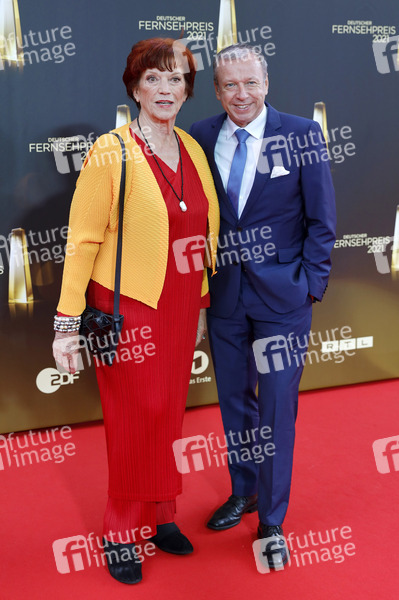 Regina Ziegler mit Begleitung bei der Verleihung des Deutschen Fernsehpreises 2021 im Tanzbrunnen. Köln, 16.09.2021