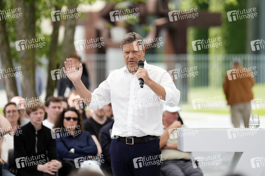 Robert Habeck beim Talk auf der Bühne Dialogforum beim Demokratiefest zu 75 Jahren Grundgesetz zwischen Kanzleramt und den Deutschen Bundestag. Berlin, 25.05.2024