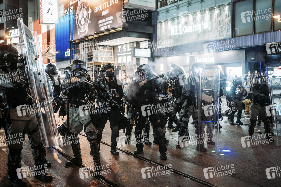 Protest gegen Regierung, Hong Kong, Politik, Aktion, Demonstration, Demonstranten, Unruhen, Straßenkämpfe, Wasserwerfer, Tränengas, Demonstrationsverbot, Polizei