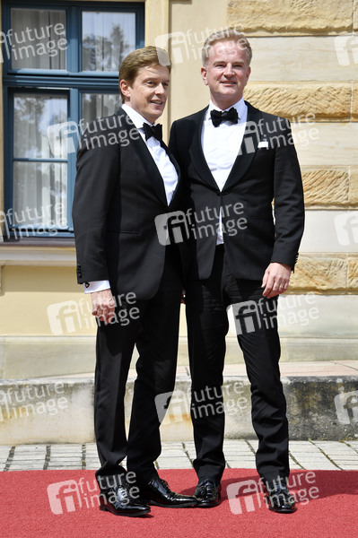 Bruno Meiser und Felix Raslag bei der Eröffnung der 112. Richard-Wagner-Festspiele 2024 mit der Neuinszenierung von 'Tristan und Isolde' im Bayreuther Festspielhaus. Bayreuth, 25.07.2024