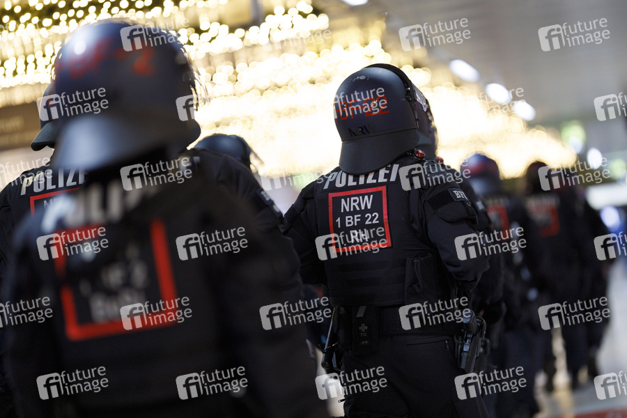 Polizisten sichern am Düsseldorfer HBF die An- und Abreise von Hooligans anlässlich der Querdenken-Demo im Rheinpark Golzheim. Düsseldorf, 06.12.2020