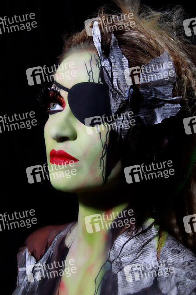 Bodypainting, Erotik, Frau, Mädchen, nackt, drinnen, weiblich, Körperkunst, Kunst, Malerei, Augenklappe, erotic, woman, girl, nude, indoor, female, body art, body painting, eyepatch