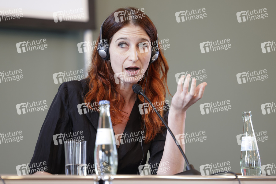 Ginevra Lamberti bei der Pressekonferenz zur Vorstellung des Programms des Ehrengastes Italien für die Frankfurter Buchmesse 2024 im Literaturhaus Schöne Aussicht 2. Frankfurt am Main, 28.05.2024