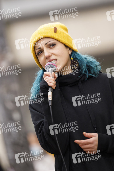 Daiana Mingarelli von Daiana Lou bei einem öffentlichen Konzert auf dem Alexanderplatz. Berlin, 15.12.2020