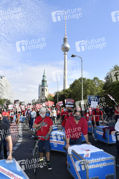 Unter dem Motto #AlarmstufeRot protestieren Mitarbeiter der Kultur-und Veranstaltungsbranche in Berlin für Soforthilfen für die Veranstaltungswirtschaft. Durch die Schließungen und Absage von Veranstaltungen während der Corona-Pandemie stehen viele Kulturschaffende, Veranstalter, Messe- oder Bühnenbauer, Techniker und Kunstschaffende vor dem Aus. Berlin, 09.09.2020