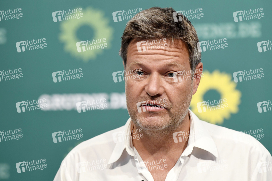 Robert Habeck bei einer Pressekonferenz nach Beratungen des Parteirats Bündnis 90/Die Grünen zum Umgang mit dem Parteimitglied Boris Palmer (Oberbürgermeister Tübingen) in der Heinrich-Böll-Stiftung. Berlin, 14.06.2021