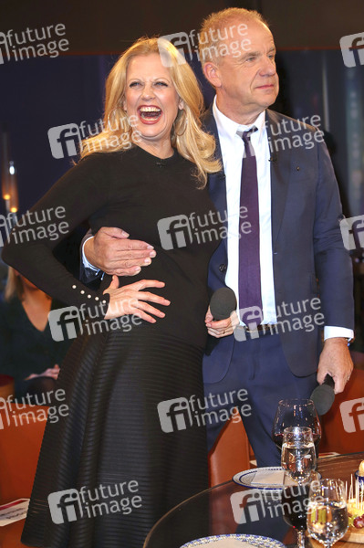 Barbara Schöneberger und Hubertus Meyer-Burckhardt bei der Aufzeichnung der 'NDR Talk Show' im NDR Fernsehstudio Lokstedt. Hamburg, 28.02.2020