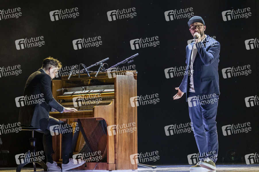 Daniel Nitt und Mark Forster bei der Aufzeichnung der TV-Show 'MDR Sputnik präsentiert: Friends of Mark Forster' im Carl-Maria-von-Weber-Theater. Bernburg, 07.12.2021