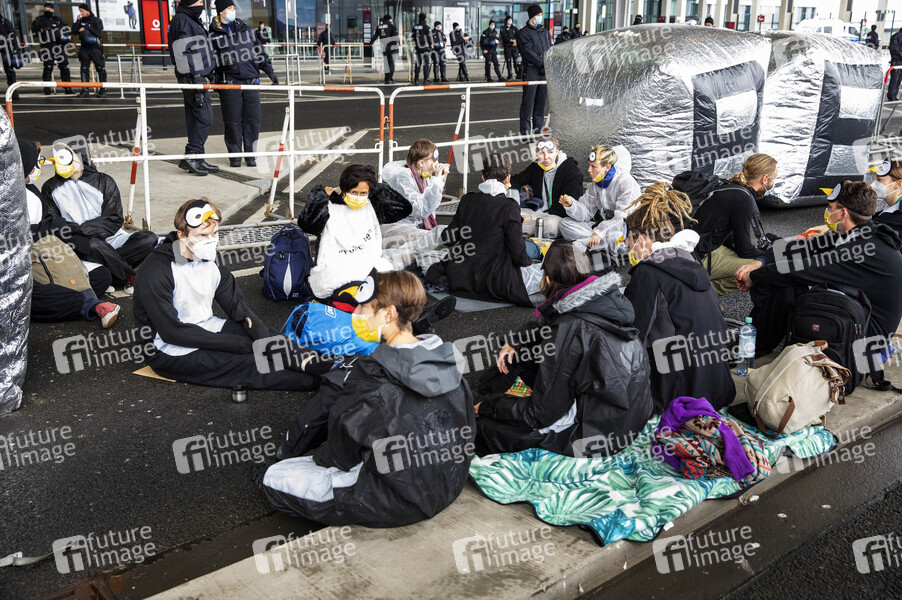 Protestaktionen von Mitgliedern des Bündnisses 'Am Boden bleiben' bei der Eröffnung des Flughafens Berlin-Brandenburg (BER). Schönefeld, 31.10.2020