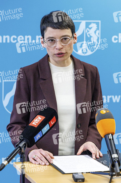 Josefine Paul gibt ihren Rücktritt vom Amt der Ministerin für Kinder, Jugend, Familie, Gleichstellung, Flucht und Integration des Landes Nordrhein-Westfalen im Kabinett Wüst II bekannt. Düsseldorf, 27.01.2026