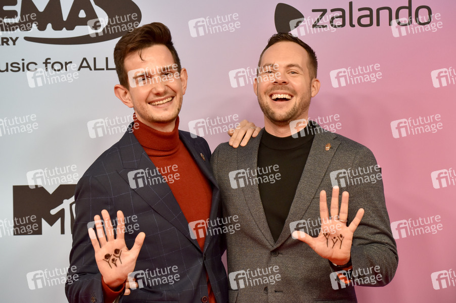 Adam Hanol und Marci Pal bei der Verleihung der MTV European Music Awards 2021 in der László Papp Sportarena. Budapest, 14.11.2021