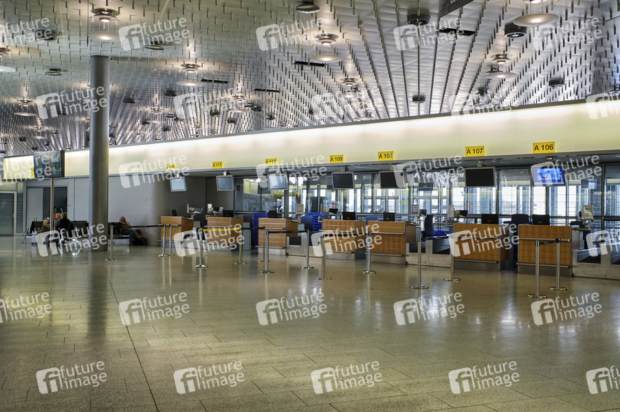 Nur wenige Reisende und gschlossenen Läden und Schalter wegen des Coronavirus am Hannover Airport. Hannover-Langehagen, 15.03.20