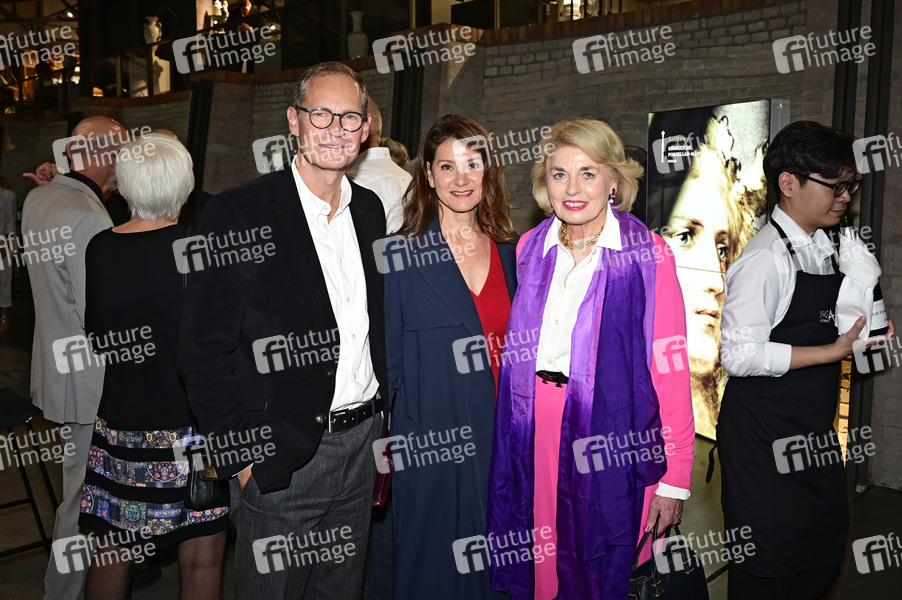 Michael Müller, Reyhan Sahin und Tini Gräfin Rothkirch beim Flying Dinner zum 261. Geburtstag der Königlichen Porzellan-Manufaktur Berlin sowie der Enthüllung des vollständig, restaurierten Fliesenwandgemäldes 'Glory of Germania' in der Ringkammerofenhalle auf dem Manufakturgelände. Berlin, 20.09.2024