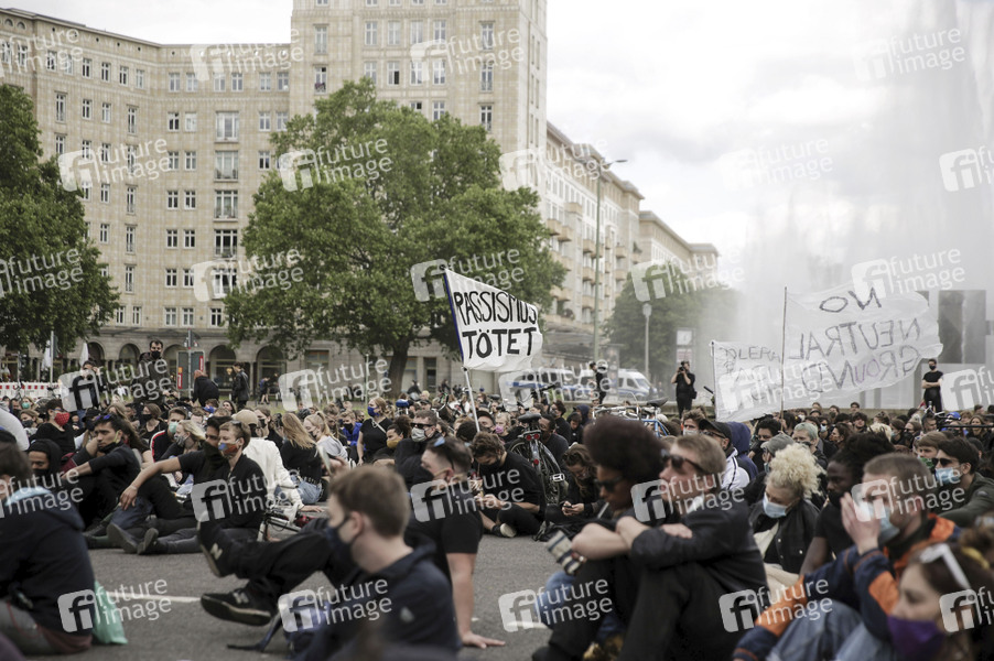 Ein Teil der Demonstranten der 'Silent Demo' am Alexanderplatz zog weiter zum Strausberger Platz und veranstaltete eine Sitzblockade. Berlin, 06.06.2020