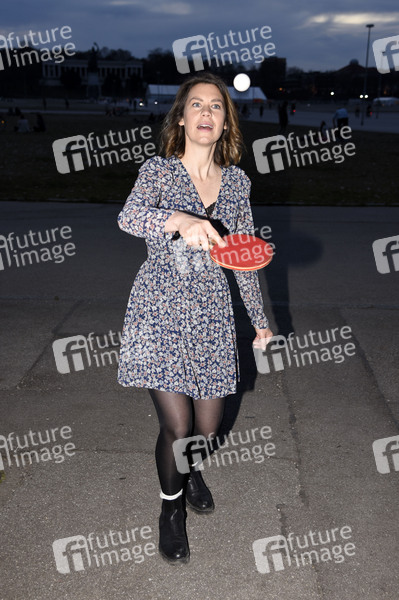 Christina Schmideder beim Videodreh zum Lied 'Radlg'fahrn und G'schmissn' der Guten A-Band im Bavariapark und auf der Theresienwiese. München, 26.03.2021