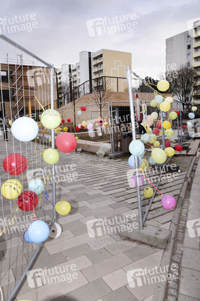 Grundschüler haben im Wechselunterricht Luftballons mit Wünschen 2021 vor allem gegen die Corona-Einschränkungen beim Schulunterricht gestaltet, hier in einer Grundschule in Haar bei München. Haar, 04.03.2021