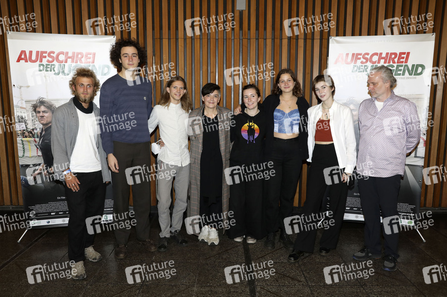 Kathrin Pitterling mit Protagonist*innen und Team bei der Premiere des Dokumentarfilms 'Aufschrei der Jugend - Fridays for Future Inside' im Kino International. Berlin, 28.10.2021