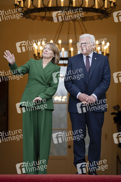 Elke Büdenbender und Frank-Walter Steinmeier beim Empfang zu einem gemeinsamen Gespräch mit dem Bundespräsidenten im Schloss Bellevue. Berlin, 18.11.2025