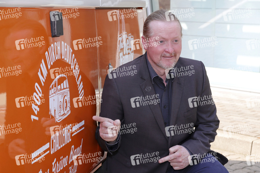 Joey Kelly beim Fototermin zum Start der Reise von Joey Kelly, der mit seinem Sohn Luke das grüne Band der alten innerdeutschen Grenze besucht im alten T2 von 1979, am Elbtor Griegstrasse. Hamburg, 13.08.2020