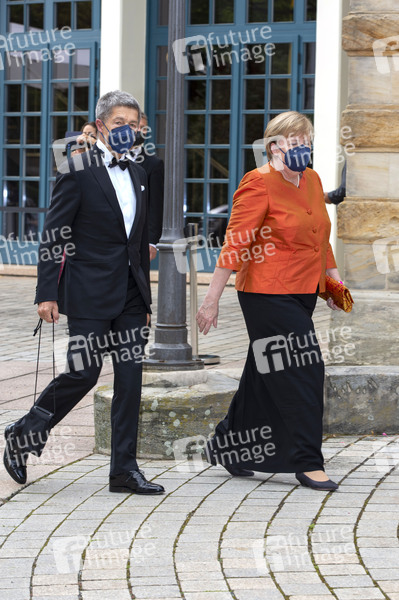 Angela Merkel mit Ehemann Joachim Sauer bei der Eröffnung der Richard-Wagner-Festspiele 2021 mit der Premiere von Richard Wagners 'Der fliegende Holländer' im Bayreuther Festspielhaus. Bayreuth, 25.07.2021