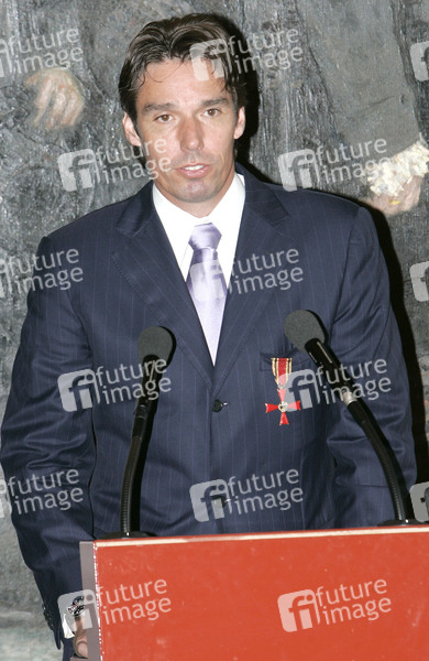 Verleihung vom Bundesverdienstkreuz an Michael Stich während des Senatsempfangs zur Ausstellung der Michael Stich Stiftung im Hamburger Rathaus