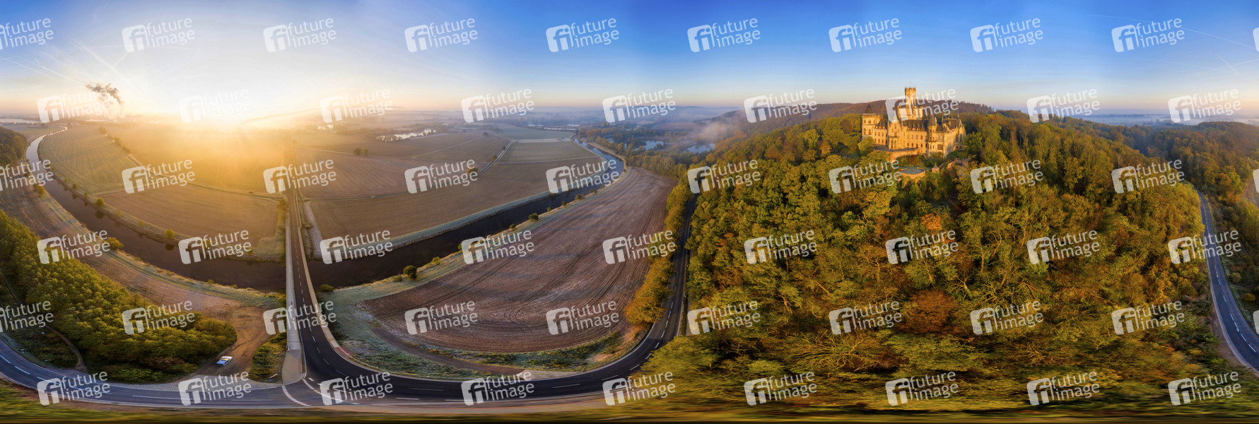Luftbild vom Schloss Marienburg in Herbst auf dem Marienberg (Freigabe zur Veröffentlichung für Presse-und Öffentlichkeitsarbeit ist von Frau Annette Langhorst als Pressevertretung des Schloss Marienburg/EAC GmbH erteilt worden). Nordstemmen, 15.11.2019