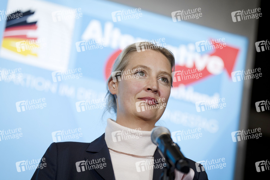 Politik, Statement, Pressekonferenz, PK, Reichstag, Deutscher Bundestag, Demokratie, Parlament, Parlamentsgebäude, Volksvertreter, MdB, Mitglied des Bundestages, Abgeordnete, Politikerin, Vorsitzende der AfD-Bundestagsfraktion, Bundessprecherin der AfD