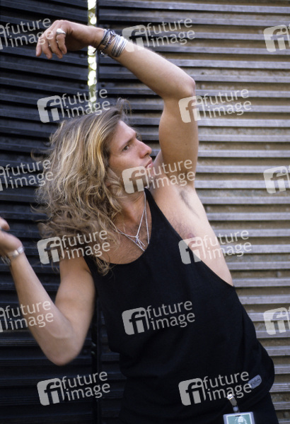 Rob Affuso von Skid Row bei einem Photoshooting im Milton Keynes Bowl. Milton Keynes, 18.08.1989