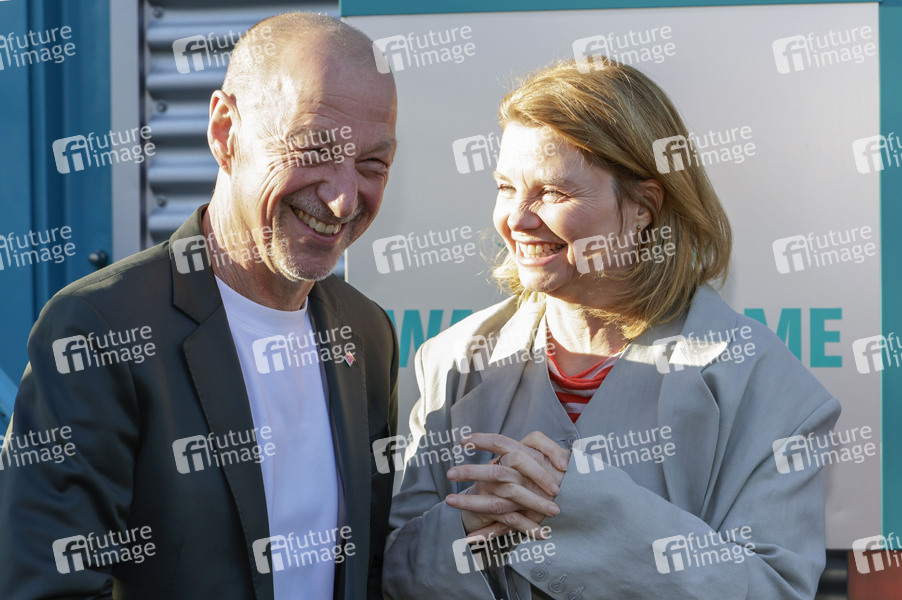 Rainer Osnowski und Annette Frier bei der Ehrung 20 Jahre lit.Cologne an der Wall of Fame am Tanzbrunnen. Köln, 18.03.2025