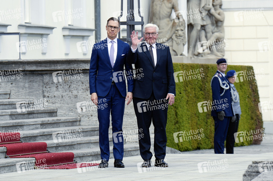 Alexander Stubb und Frank-Walter Steinmeier beim Empfang des Präsidenten der Republik Finnland mit militärischen Ehren im Schloss Bellevue. Berlin, 08.05.2024